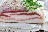 Для засолки лучше брать тонкий продукт до 5 см толщиной, поверхность которого не выравнивается после надавливания пальцем. Нельзя брать куски от туши хряка или кабана – мало того, что сало невкусное и жесткое, так еще и после обработки приобретает неприятный запах мочи. Определить происхождение можно поджиганием небольшого кусочка – запах проявится сразу. Идеальным полуфабрикатом для засолки станет обожженная на соломе свинина. Перед тем как солить, ее моют, убирают загрязнения металлической щеткой.