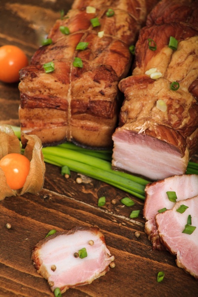 | Копченый канадский бекон, копченая корейка | 55–65 | 2–3 | 2–3 | 40 | 5–7 |