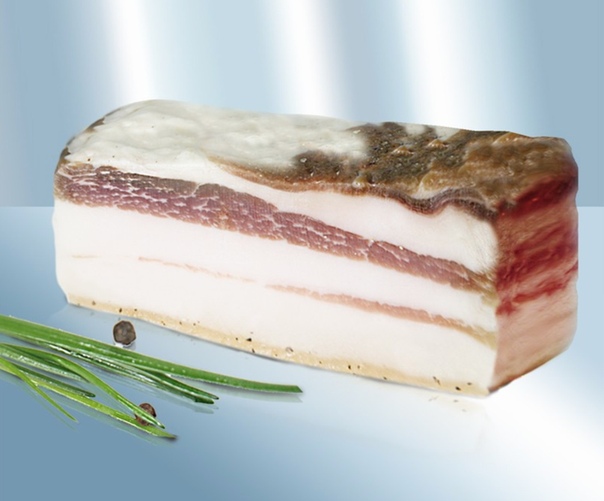 - Свежий продукт отличается чистым белым цветом с розоватым оттенком и минимумом мясных прожилок.