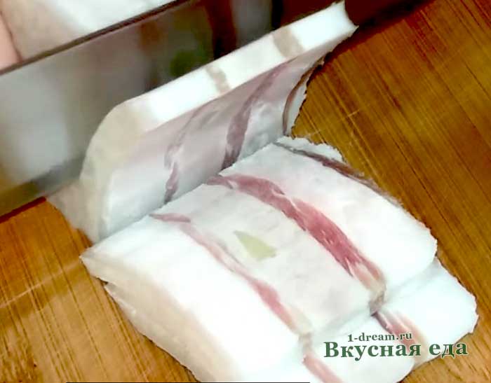 Далее сало разделяем на несколько равных частей.