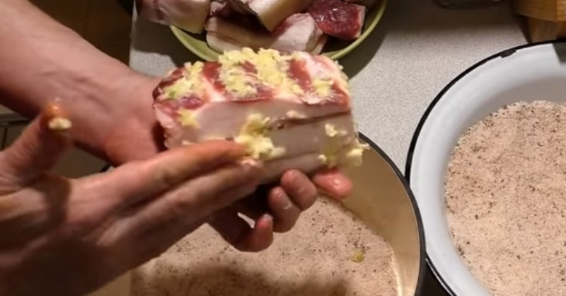 Вкусное сало с чесноком сухим способом в домашних условиях