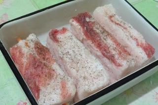 - Затем надо проделать такие же манипуляции с остальными приправами. Это значит, что каждый кусочек сала необходимо щедро намазать со всех сторон.