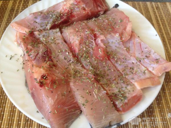 - Рыбину почистить, убрать голову и хвост, разделать на два куска, удалить хребет.