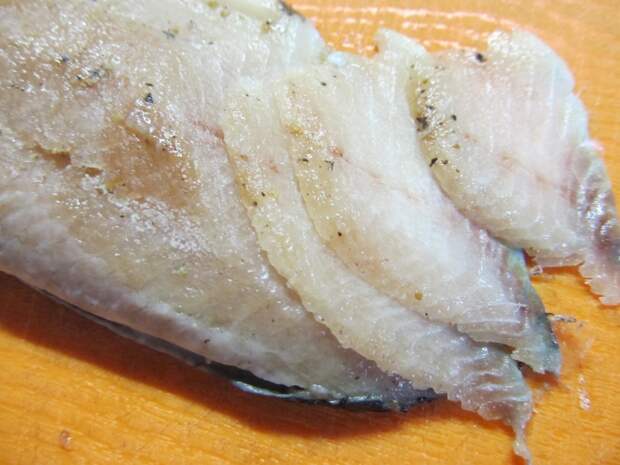 И при этом ее филе остается упругим, и его можно легко нарезать мелкими кусочками.