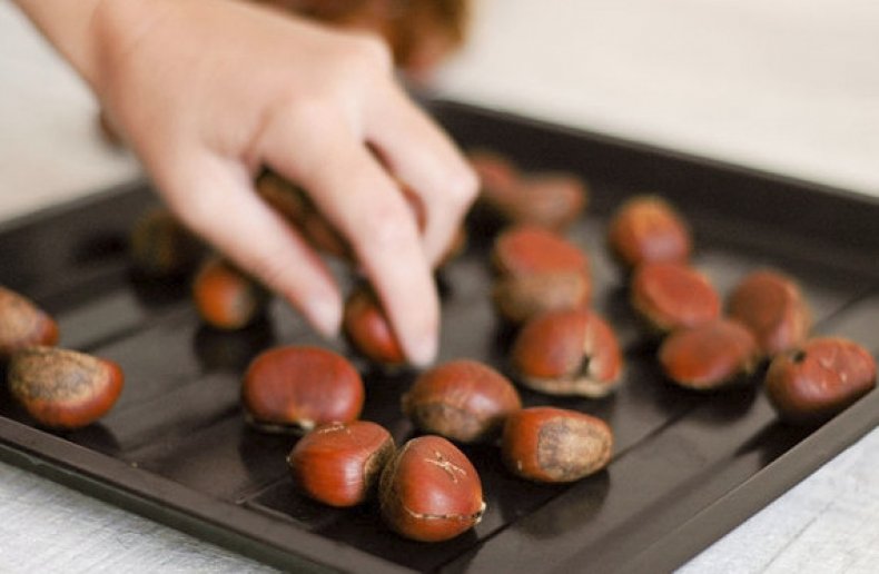 Кирстен Хикман / Ешьте это, не то!Перед тем, как поместить каштан в духовку, убедитесь, что сторона каштана срезана «Х» вверх.