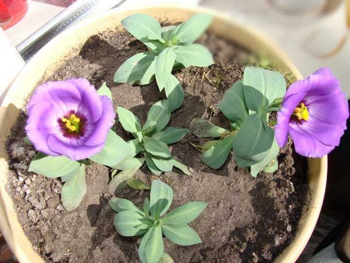 Осенью эустому многолетнюю можно пересадить в горшок и выращивать как комнатное растение, поместив ее в прохладную светлую комнату или зимний сад. Не забывайте чаще опрыскивать эустому, и она долго сможет вас радовать своими очаровательными цветками. А весной вы можете вновь высадить эустому в открытый грунт.