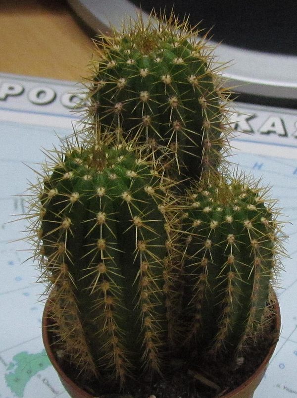 Цереус похож на ежовый кактус, но состоит не из одной «шишки», а из нескольких или множества, нагромождённых друг на друга, словно несколько сросшихся ежовых кактусов. Весьма неприхотлив, может вырастать до огромных размеров, размножается так же, как ежовый кактус, но в домашних условиях не цветёт.