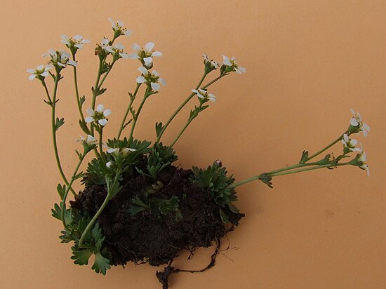 Камнеломка дернистая образует подушки дёрна, с многочисленными цветочками