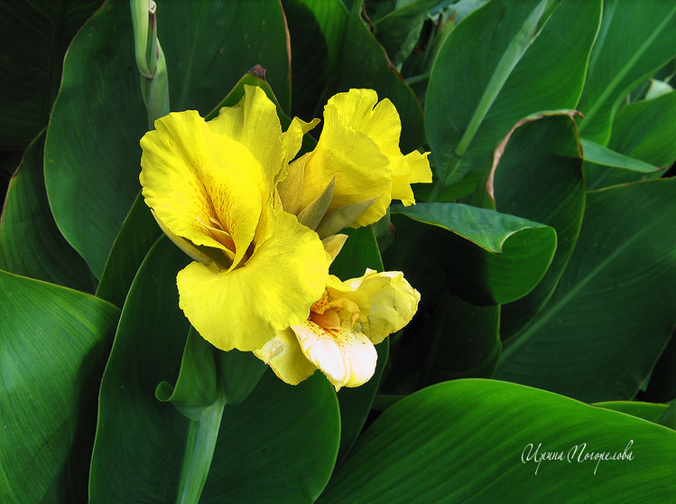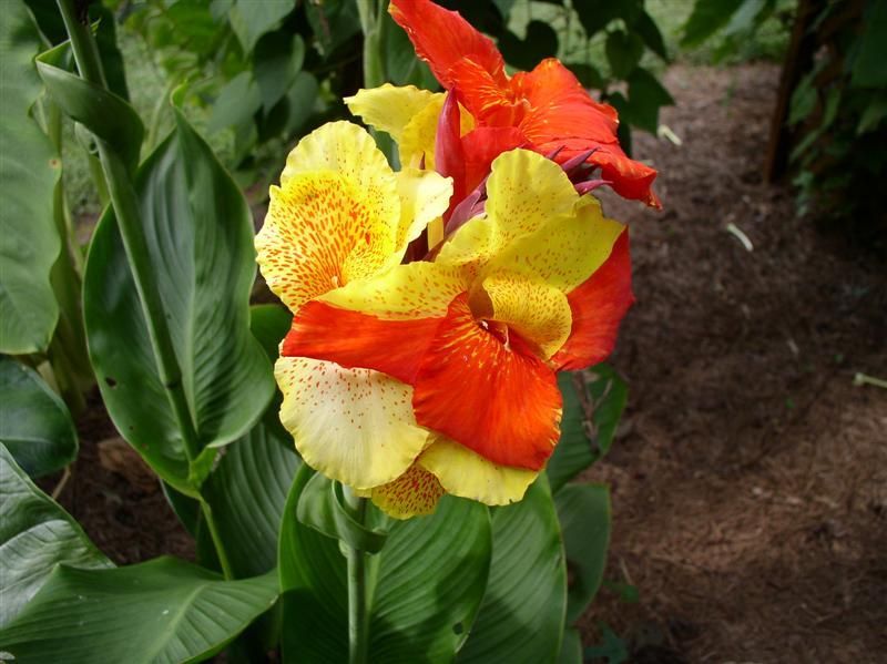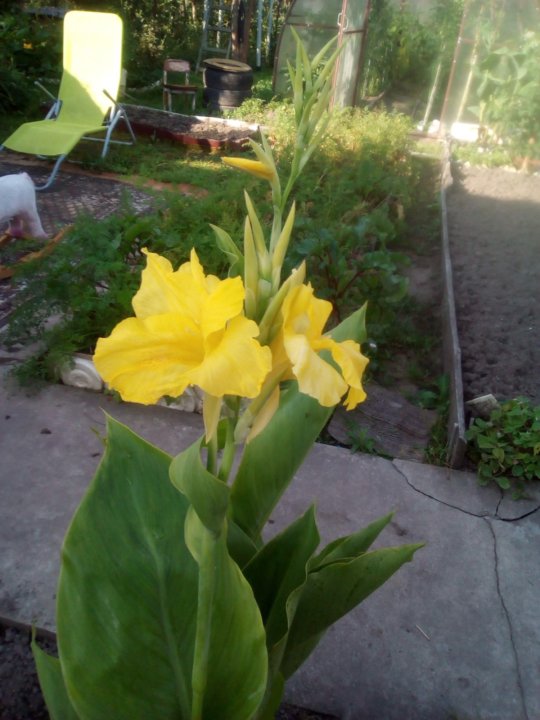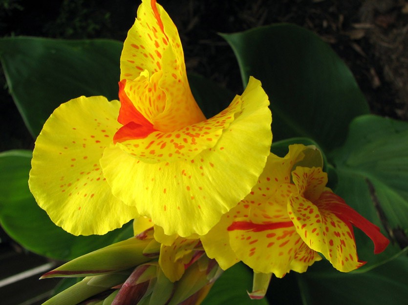 Канна лиственно-декоративное растение с густой листвой и ярко раскрашенными цветками.