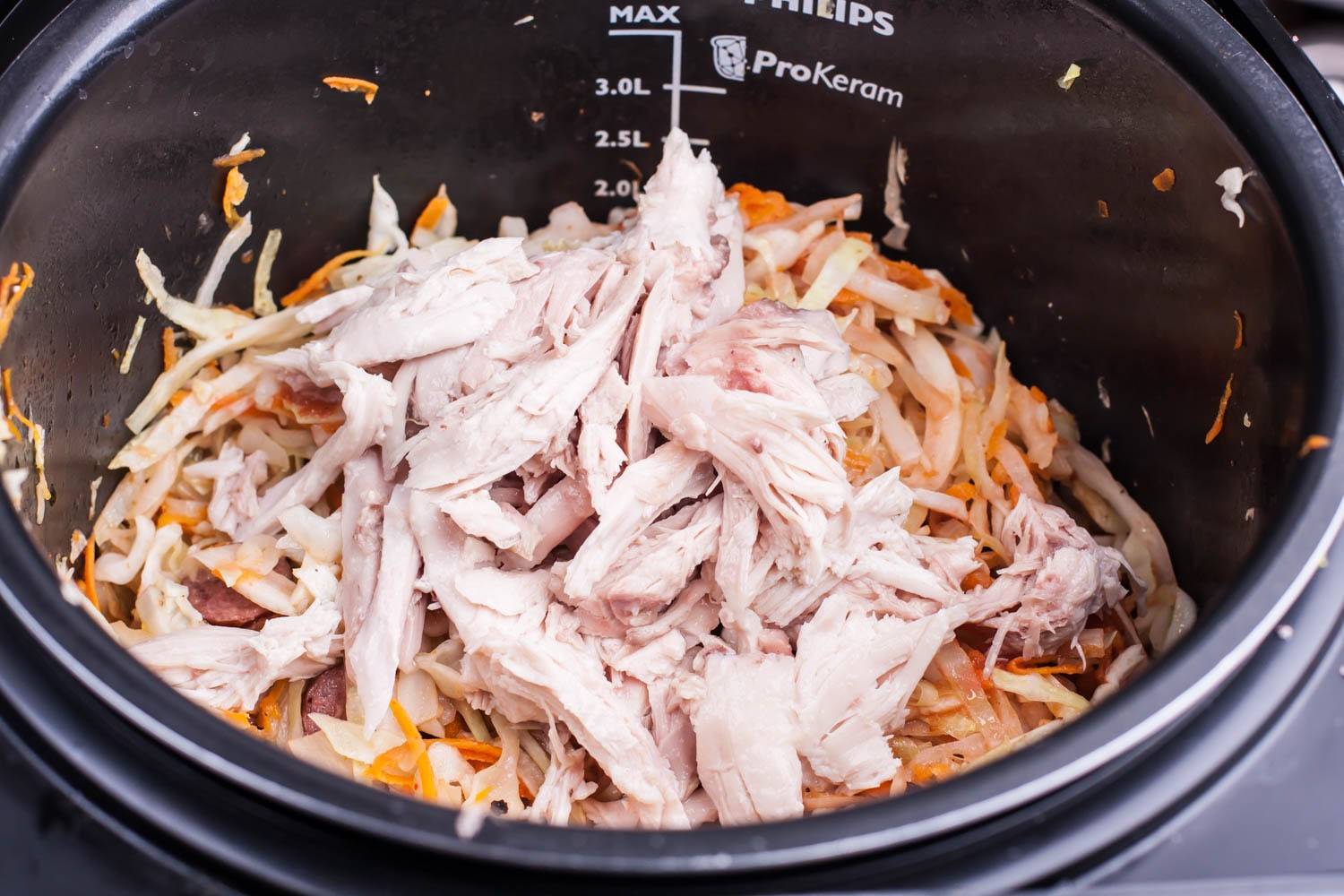 - Перекладываем квашеную капусту к курице.