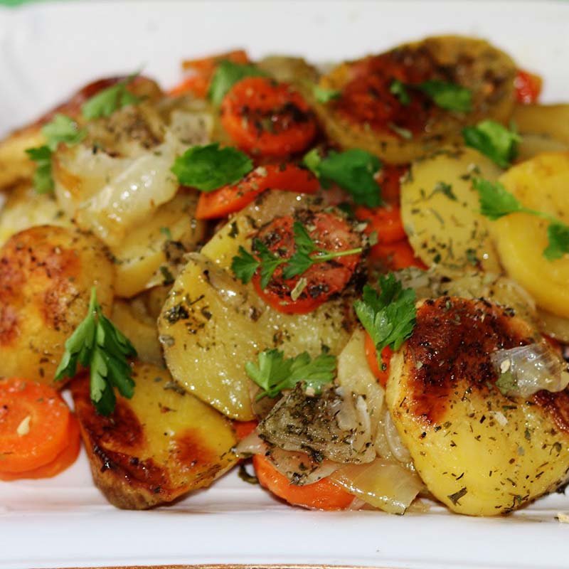 Я всегда ищу новые овощные гарниры, а этот — хранитель.Нарезанный кубиками картофель посыпают нарезанным чесноком и луком и обжаривают до хрустящей корочки и слегка подрумянивают. Затем добавляют нарезанные помидоры на последние десять минут, чтобы они только начали размягчаться и выделять сок. Когда овощи готовы, в смесь добавляется свежий нарезанный базилик. Этот вкусный гарнир подойдет практически к любому блюду из мяса или морепродуктов. Вы также можете добавить нарезанный сладкий перец или грибы, если хотите. Сорт помидоров не имеет значения, пока они спелые.Я использовал помидоры черри в версии, показанной на фотографиях, но также использовал более крупные помидоры, которые я просто нарезал кубиками после того, как выдавил большую часть семян. Блюдо вкусно подавать горячим из духовки или при комнатной температуре.