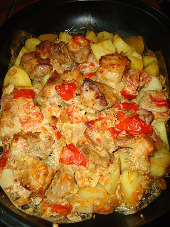 Второй классически вариант приготовления мяса по-французски, это добавление в рецепт картофеля.