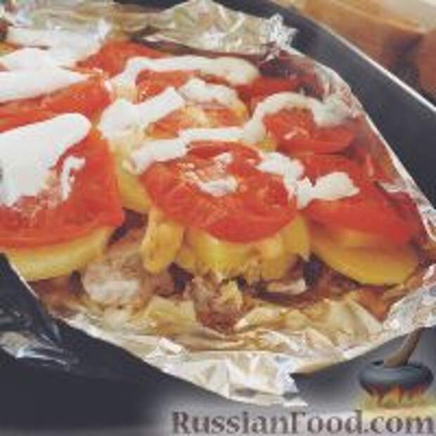 Картошка с мясом с сыром и помидорами в духовке: Мясо свинины по французски с помидорами