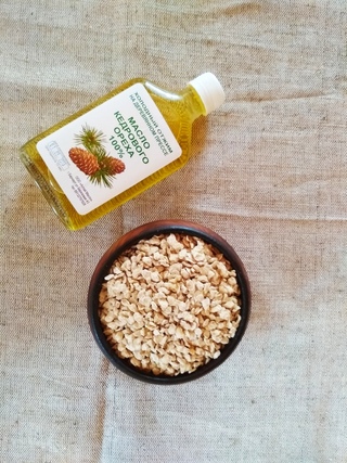 Кедровый жмых, или шрот, образованный после отжима масла из орехов, представляет собой сухую светлую массу в виде хлопьев с приятным запахом и сладковатым, с легкой горчинкой вкусом. Полезные свойства жмыха кедрового ореха делают его ценным продуктом.