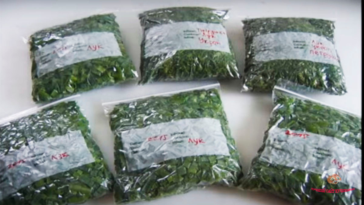 - Помещаем пакеты в морозильную камеру и храним там. На заметку: если в морозильнике хранится несколько сортов зелени, подписывайте мешочки и контейнеры, чтобы не запутаться.
