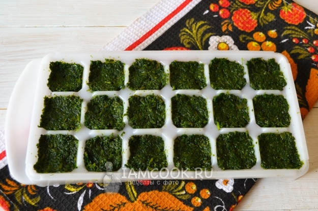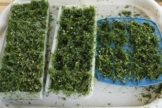 - Хранение трав, погруженных в воду, бульон или масло, в морозильную камеру в лотках для кубиков льда или банках.