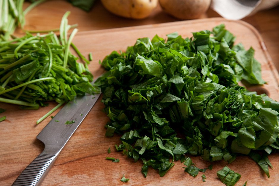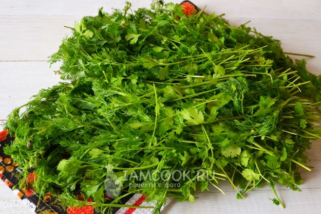 - Моем, подсушиваем и измельчаем зелень, так же, как и в первом случае.