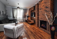 Ламинат на стене в гостиной выполняет сразу две функции — декоративную и практическую. Так, оформление ламелями стены с телевизором дает возможность спрятать все кабели от медиатехники. Древесная структура над мягкой зоной оживляет интерьер и вместе с тем придает сугубо домашнюю атмосферу. Не менее эффектно смотрится стена из ламината над камином или книжными шкафами. Благородный и уютный «библиотечный» вид способствует расслабленным размышлениям или дружеским разговорам.