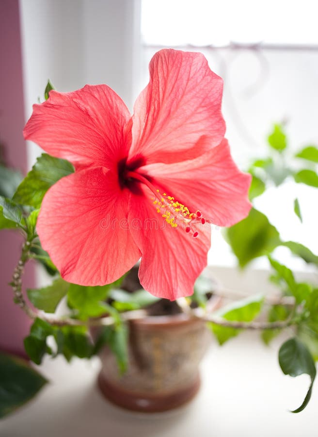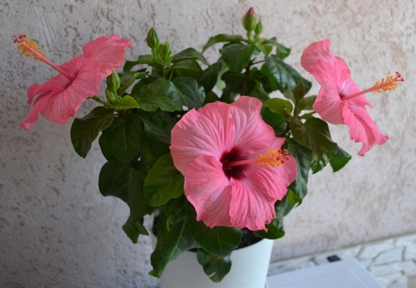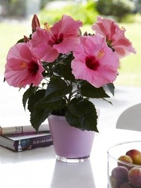 В спальне и в кабинете начальника можно держать гибискус с розовыми цветками