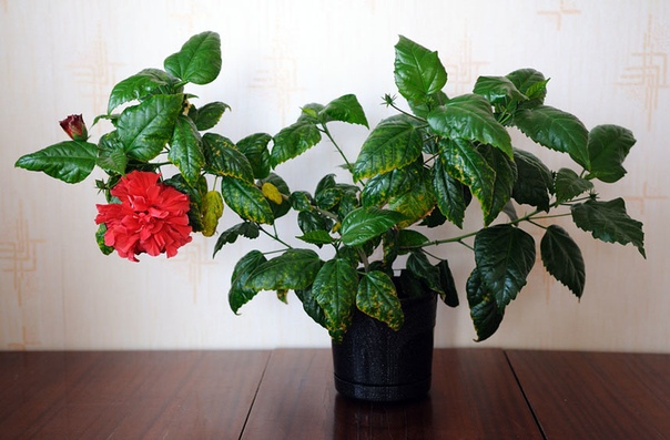 Возможны проблемы с корневой системой при обильном поливе и низкой температуре воздуха. Гибискусу бывает плохо в жаркой комнате с сухим воздухом без регулярных опрыскиваний чистой водой.