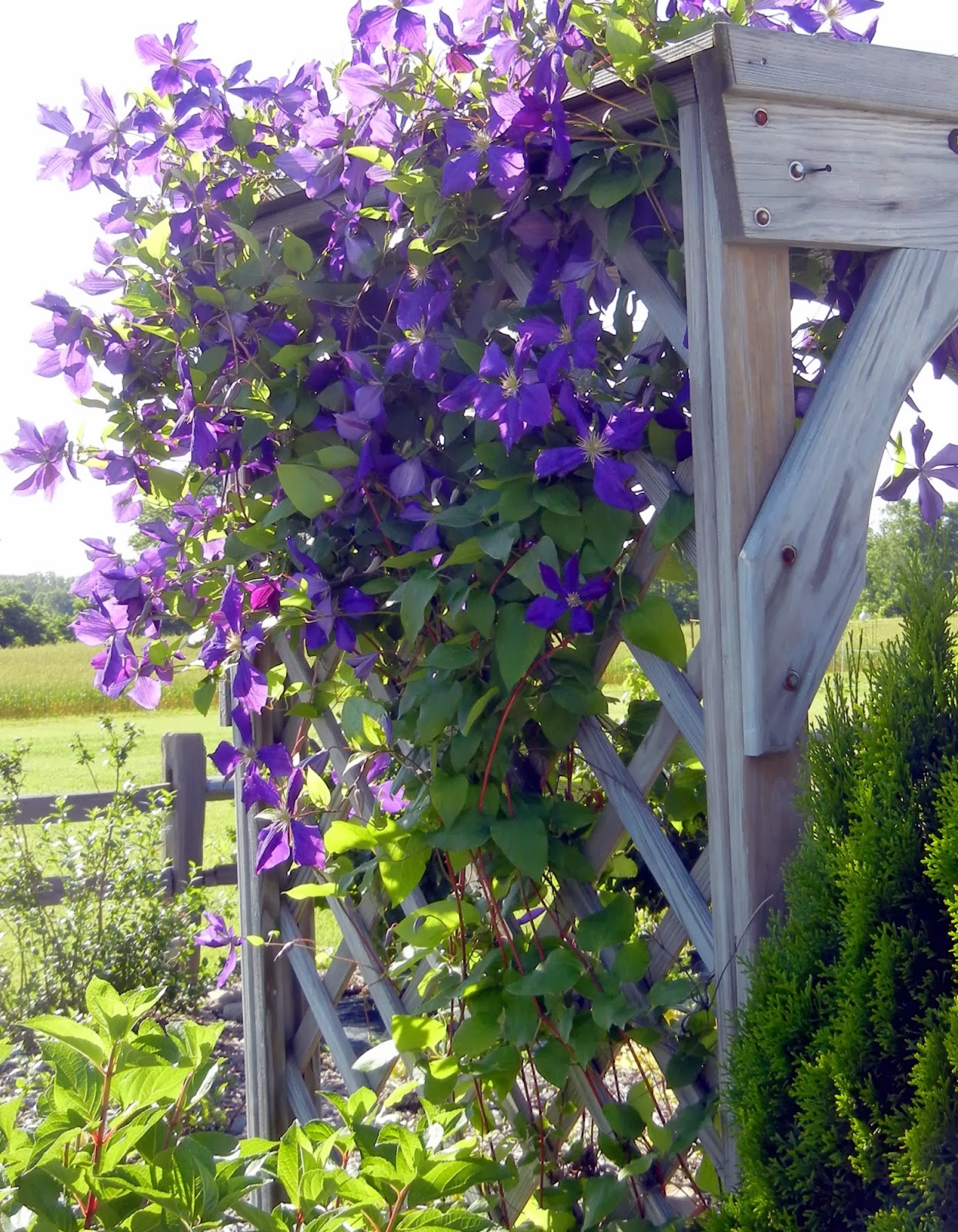 Как только это произойдет, побеги лозы будут осторожно направлять их вверх. Вы можете на самом деле «укладывать» свою лозу по мере ее роста, но опять же, будьте осторожны; стебли остаются хрупкими.Вскоре вы увидите бутоны, и вдруг однажды они начнут открываться. Самые популярные сорта клематисов распускают невероятно большие цветы, часто от 5 до 8 дюймов в поперечнике. Они обращены к самой солнечной стороне вашей решетки, и что ж, просто взгляните на фотографии. Ничто не делает изображение лучше.