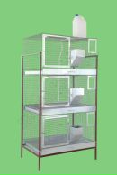 В этих питомниках всегда доступна установка одного или нескольких дополнительных ярусов. При этом следует иметь в виду, что необходимо изготовить и закрепить под каждым этажом поддоны для сбора отходов. Кроме того, варианты со слишком большим количеством ярусов не очень предпочтительны. Чтобы кролики (особенно это касается молодняка) не застревали в сетке, при устройстве питомника необходимо использовать материал, у которого размер ячеек не превышает 2 х 2 см.