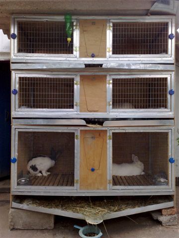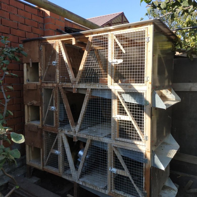 Есть настоящие фермы для кролов «Раббитакс», в них вместе живут и размножаются более 25 животных. Продают множество видов таких клеток. Но также можно построить их самостоятельно. Основой являются чертежи кроликовода Михайлова.