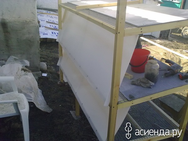 предпочтительно брать деревянные бруски. - На пол кладется рейка или же мелкая сетка. Крышу стоит сделать из доски или фанеры.