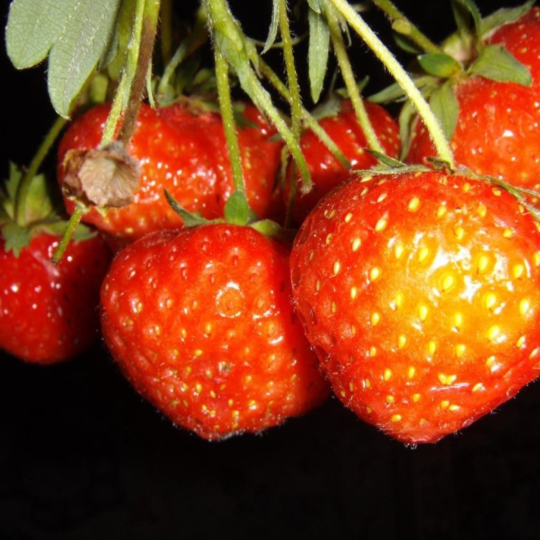 Одно из достоинств этих сортов ‒ изумительное качество ягод, как по внешнему виду, так и по вкусовым свойствам. Ярко-красные плоды крупные (до 40-50 г), ровные, аккуратные, поверхность как лакированная.