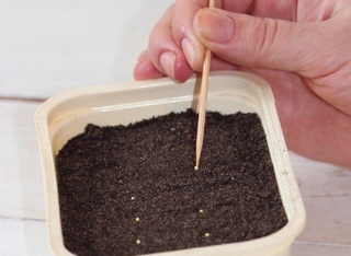 - Грунт слегка смачивают, на его поверхности укладывают семена и присыпают тонким слоем почвы.