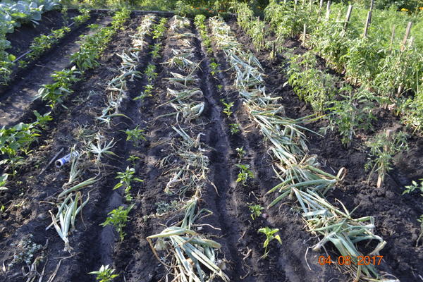 Также иногда встречаются бактериальные мягкие гнили. Удаляйте отдельные заплесневелые растения, как только вы их увидите. Всегда удаляйте чесночные остатки с поля в конце сезона или доделывайте их и сажайте культуру, не относящуюся к луку. Летом биологическая жизнь почвы очень активна, и почвенные организмы быстро разрушают мусор.