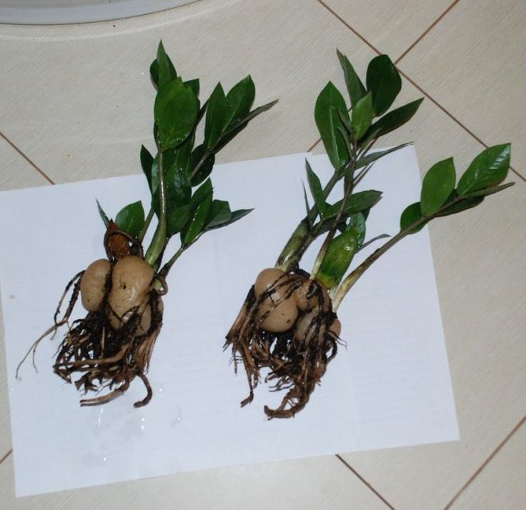 Корневая система растения состоит из плотных клубней, которые довольно уязвимы. При неосторожной пересадке их можно повредить, что часто приводит к гибели цветка. Поэтому пересаживать замиокулькас следует не торопясь и предельно аккуратно.