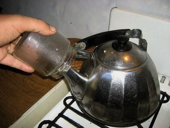 Закипел? Тогда заливаем его в банку и на этот раз уже плотно закручиваем крышку. Подстилаем что-нибудь и ставим банку вверх дном на крышку.