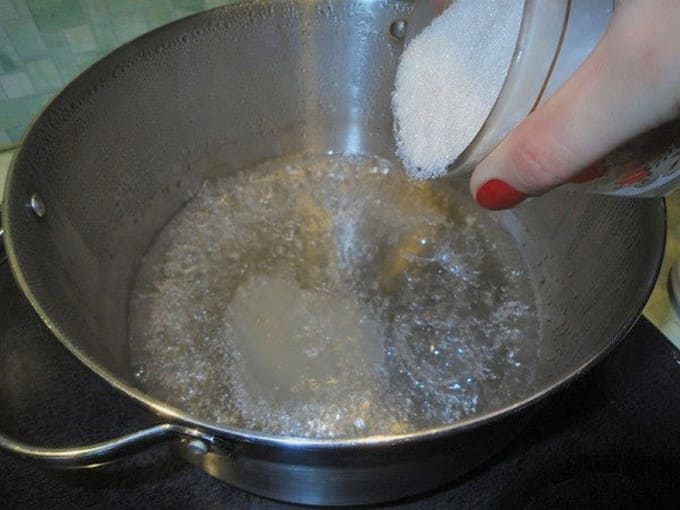И осторожно и постепенно заливаем в банку крутой кипяток по самое горлышко. Сахар начнет таять на глазах, но если некоторая его часть останется на дне — ничего страшного, растает.