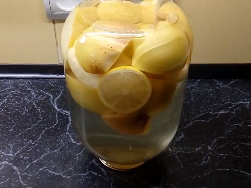 ΠΠΎΡΠΎΠ²ΠΈΡΡ Π½ΡΠΆΠ½ΠΎ Π½Π΅ ΡΠΎΠ»ΡΠΊΠΎ Π±Π°Π½ΠΊΠΈ ΠΈ ΠΊΡΡΡΠΊΠΈ, Π½ΠΎ ΠΈ ΡΠ°ΠΌΠΈ ΡΠ±Π»ΠΎΠΊΠΈ. ΠΠ°ΡΠ΅Π·Π°ΡΡ Π΄ΠΎΠ»ΡΠΊΠ°ΠΌΠΈ, ΠΏΠ»ΠΎΠ΄Ρ Π·Π°Π»ΠΈΡΡ Ρ ΠΎΠ»ΠΎΠ΄Π½ΠΎΠΉ Π²ΠΎΠ΄ΠΎΠΉ Ρ Π΄ΠΎΠ±Π°Π²Π»Π΅Π½ΠΈΠ΅ΠΌ Π»ΠΈΠΌΠΎΠ½Π½ΠΎΠΉ ΠΊΠΈΡΠ»ΠΎΡΡ. ΠΡΠΎΠΏΠΎΡΡΠΈΠΈ ΡΠ°ΡΡΠ²ΠΎΡΠ° — ΠΏΠΎΠ»ΠΎΠ²ΠΈΠ½Π° ΡΠ°ΠΉΠ½ΠΎΠΉ Π»ΠΎΠΆΠΊΠΈ Π½Π° Π»ΠΈΡΡ Π²ΠΎΠ΄Ρ. ΠΡΠΈΠΌΠ΅ΡΠ½ΠΎ ΡΠ΅ΡΠ΅Π· 20 ΠΌΠΈΠ½ΡΡ ΡΠ±Π»ΠΎΠΊΠΈ ΠΌΠΎΠΆΠ½ΠΎ Π²ΡΠ½ΡΡΡ ΠΈ ΠΏΠ΅ΡΠ΅Π»ΠΎΠΆΠΈΡΡ Π² Π±Π°Π½ΠΊΠΈ. Π’Π΅ΠΏΠ΅ΡΡ ΠΌΠΎΠΆΠ½ΠΎ ΡΡΠ°Π·Ρ ΠΏΡΠΈΡΡΡΠΏΠΈΡΡ ΠΊ ΠΏΡΠΈΠ³ΠΎΡΠΎΠ²Π»Π΅Π½ΠΈΡ ΠΊΠΎΠΌΠΏΠΎΡΠ°.