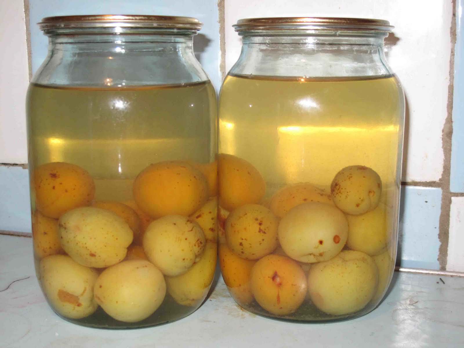 В остальном технология приготовления стандартна – в банку укладывают фрукты (с косточкой или без – на личное усмотрение). Затем делается многократная пряная заливка.
