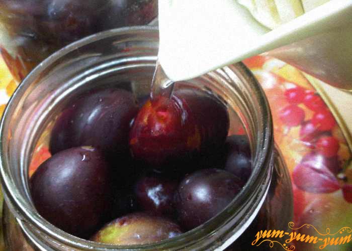 Действия повторяются дважды, после чего можно закатывать банки с маринованной сливой.