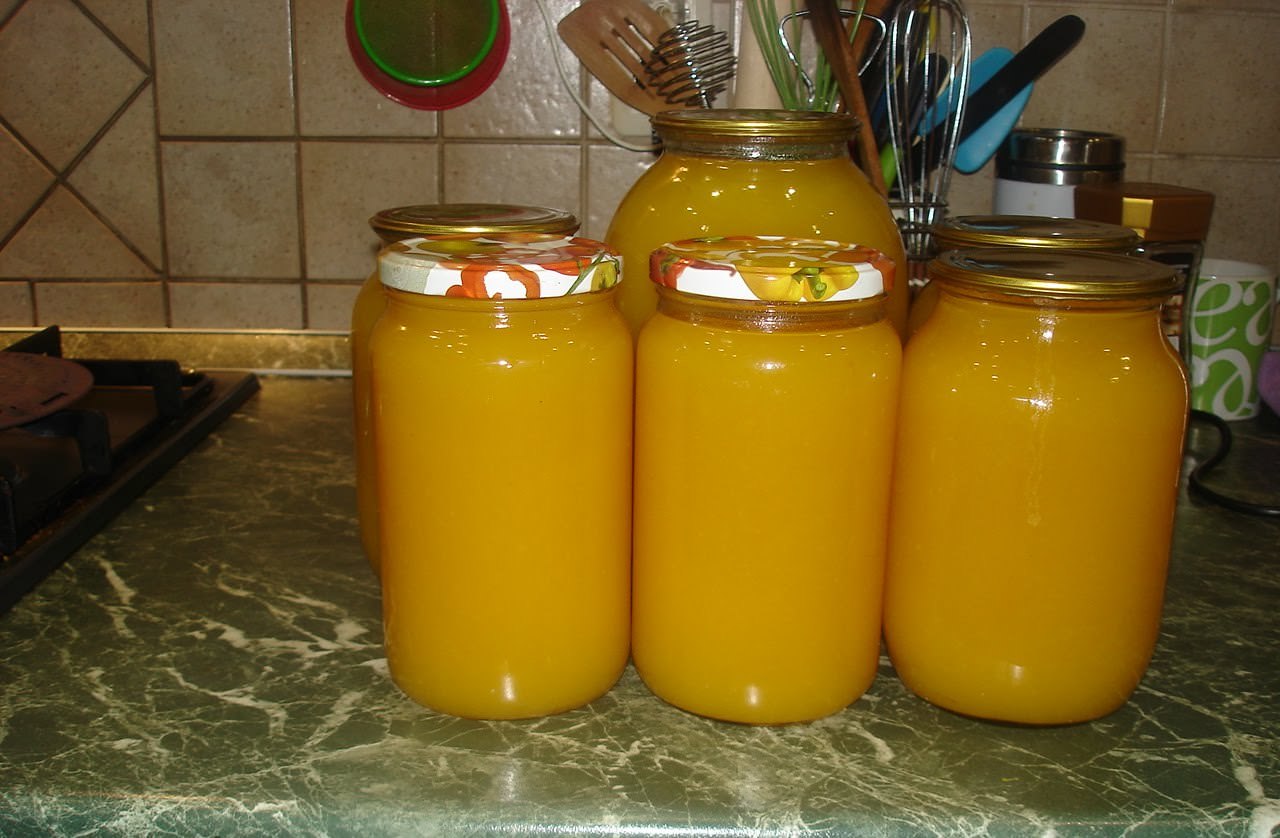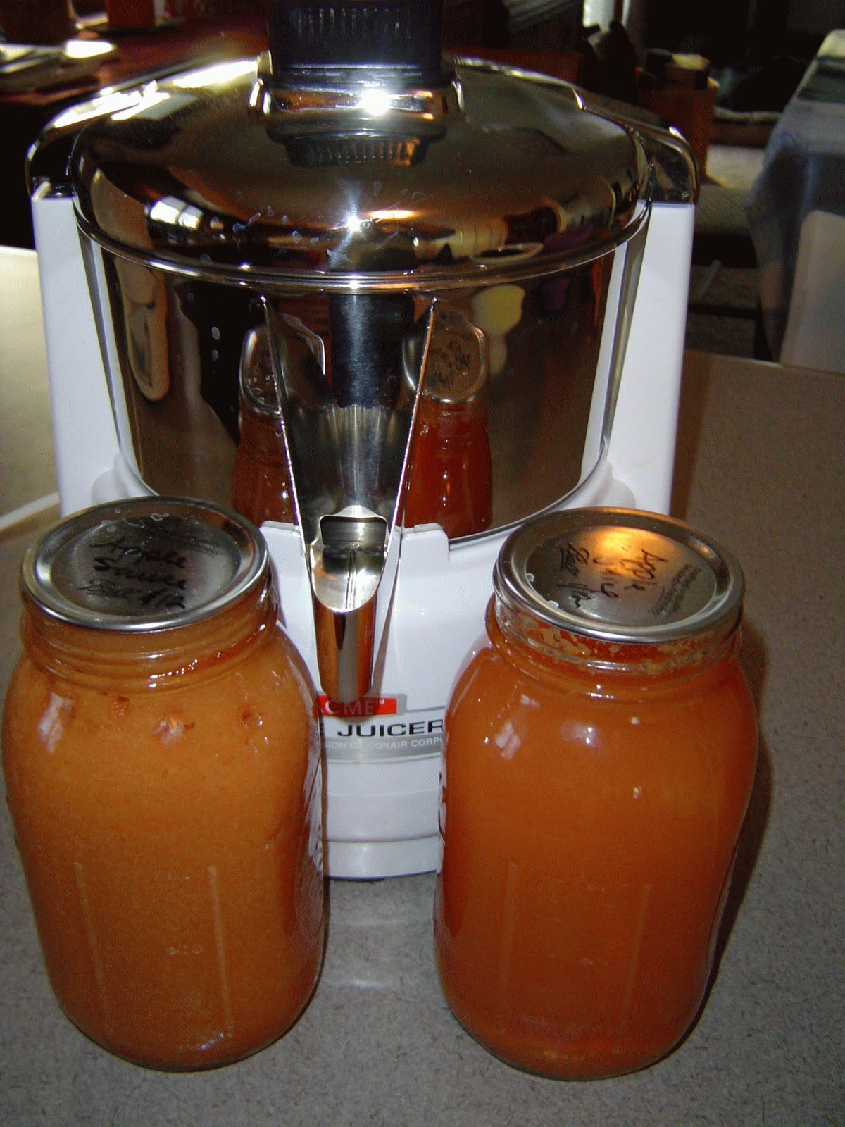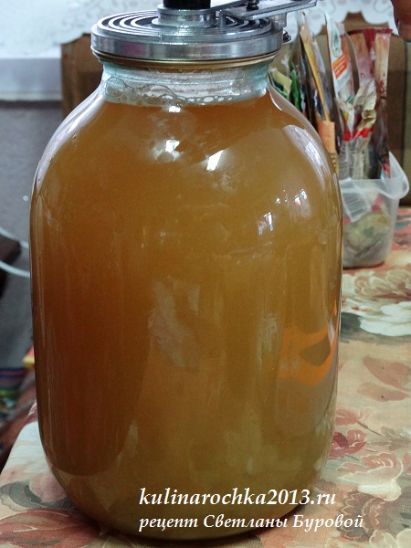 Итак, полученная при отжиме масса выливается в кастрюлю, доводится до кипения, и кипятится в течение 5 минут. В горячем виде сок разливается по банкам, герметично закрывается крышками, переворачивается вверх дном.