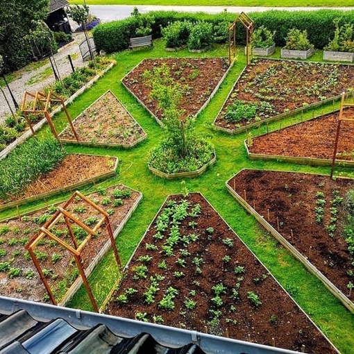 Огородные грядки совсем не обязательно должны быть скучными и однообразными. Посмотрите как красивы огороды на этих фото благодаря форме грядок.