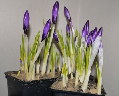 Чтобы взрастить крокусы в горшках, следует правильно выбрать посадочный материал. Существует большое количество видов и сортов этой культуры, но не все из них способны цвести в закрытом помещении. Природные разновидности являются мало декоративными, потому что цветки у них мелкие и невзрачные. Гибриды группы хризантус довольно капризны и требуют особого ухода, бутоны у них часто засыхают, даже не распустившись.
