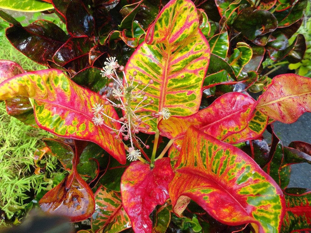 Ученые на сегодняшний день не могут дать точный ответ, с чем это связано. Однако следует учитывать, что эта культура отличается очень высокой степенью мутируемости, именно поэтому селекционерам удалось вывести так много разнообразных гибридных форм и сортов, которые отличаются друг от друга только внешним видов листовых пластин. - Цветение кротона является малопривлекательным, но зато оно забирает у куста много сил. Если вы не собираетесь собирать семена, то обрывайте цветочные почки либо цветоносы сразу же после их формирования.