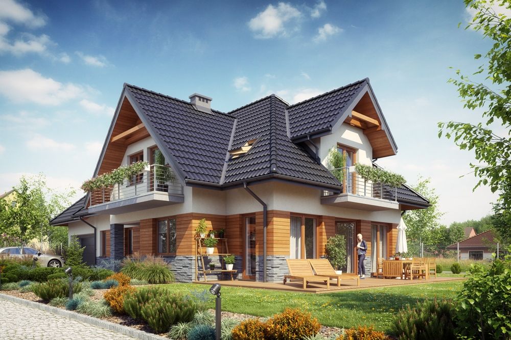 Стоит отметить, что кровля не скажется на облике всего дома. Однако стоит обратить внимание на цвет крыши и торцевую планку.