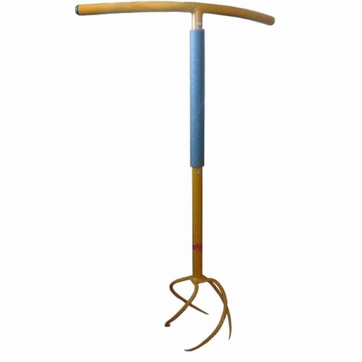 Это очень простой и доступный инструмент. Оно состоит из стержня, насаженного на рукоять различной длины, из которого отходит три или больше круглых в сечении изогнутых «когтя» с небольшими треугольными насадками на концах, как у крюка. Несмотря на примитивность конструкции, такой рыхлитель довольно эффективен. С его помощью можно легко и просто подцеплять подсохшие на поверхности кусочки почвы, а протаскивая инструмент по земле с небольшим нажимом, как раз добиваются неглубоких борозд, достаточных для регулярного эпизодического рыхления.