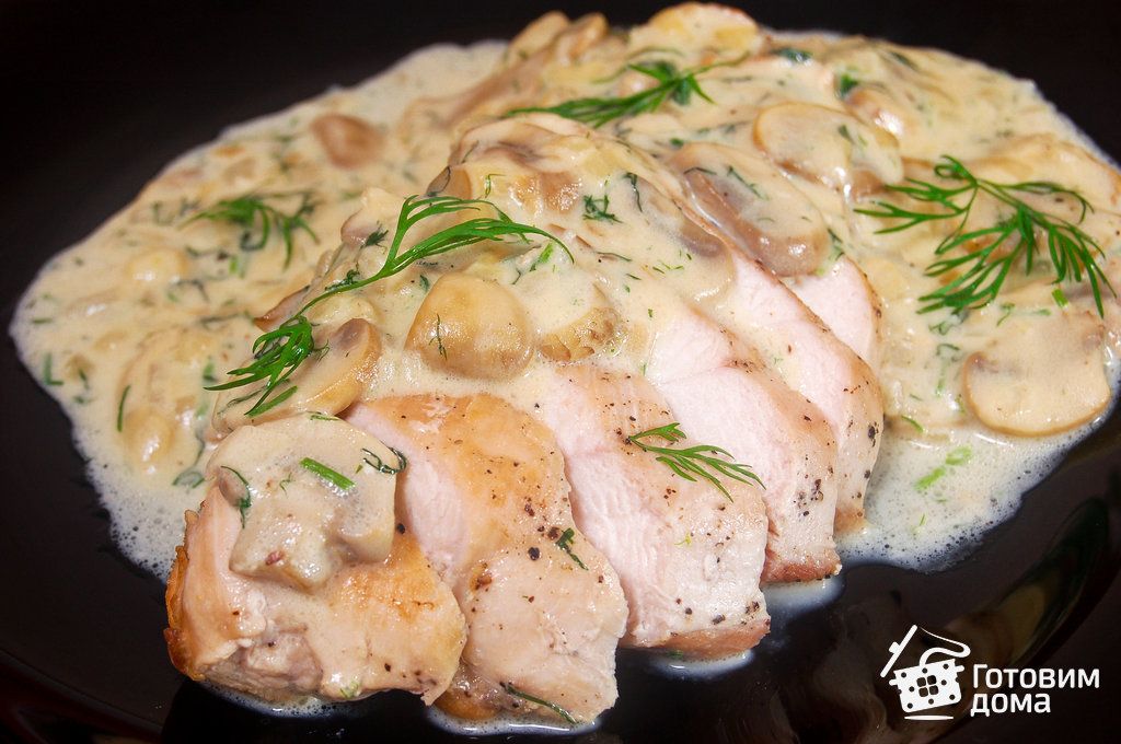 Филе курицы с грибами в сметане – рецепт на сковороде