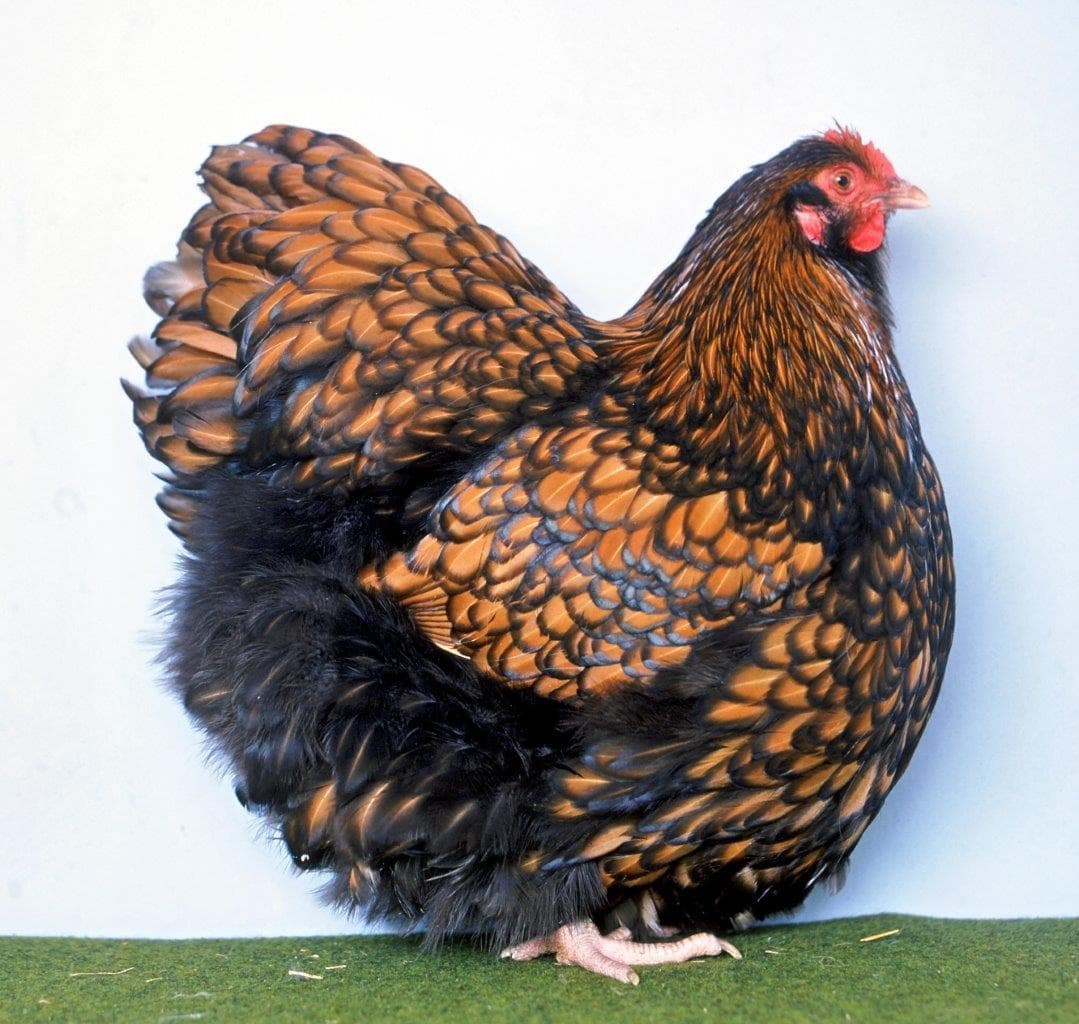 - оперение — густое, черное, с вкраплениями медно-золотистого цвета, у петухов, плеч, гривы, поясницы может быть ярко-золотого цвета;
