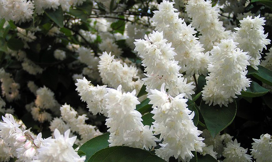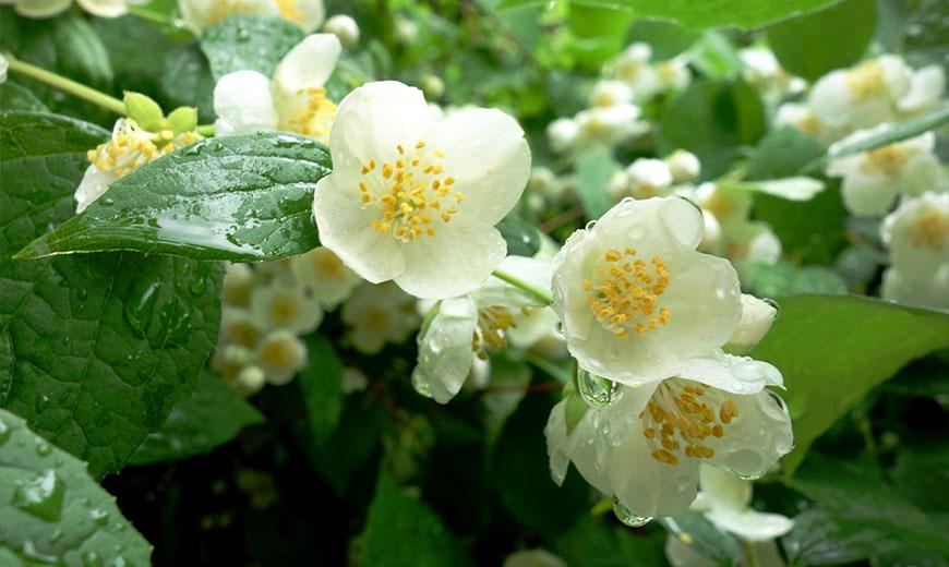 Жасмин садовый, который так часто встречается в наших садах, на самом деле не относится к настоящему жасмину. Его правильное название чубушник. Это многолетний кустарник, который у нас ассоциируется с жасмином, по праву считается королевским многолетником. Его ценят за красоту цветения, аромат и неприхотливость. Жасмин (чубушник) считается одним из самых красивоцветущих многолетних кустарников. И действительно, сад с цветущим жасмином представляет из себя невероятное зрелище. Высота этих кустарников в зависимости от региона нашей страны может достигать от 1 до 4 метров. В наших садах популярны несколько видов жасмина с разными оттенками цветов и разными сроками цветения.