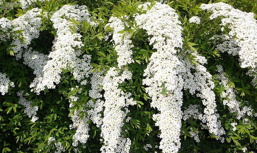 Популярные виды кустарника Spiraea vanhouttei, Спирея Аргута. Цветы растения напоминают полукруг, побеги под их тяжестью опускаются вниз. Используется кустарник для декорации зоны отдыха, оформления веранд, создания ансамблей.