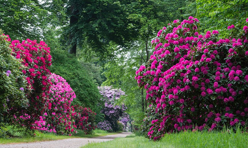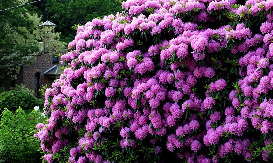 Рододендрон цветёт всё лето пышными соцветьями. Существует 1300 сортов кустарника. Выбирайте по своему вкусу с оглядкой на климат и качество земли на участке. Гибридные сорта лучше переносят морозы, чем стандартный тип растения.
