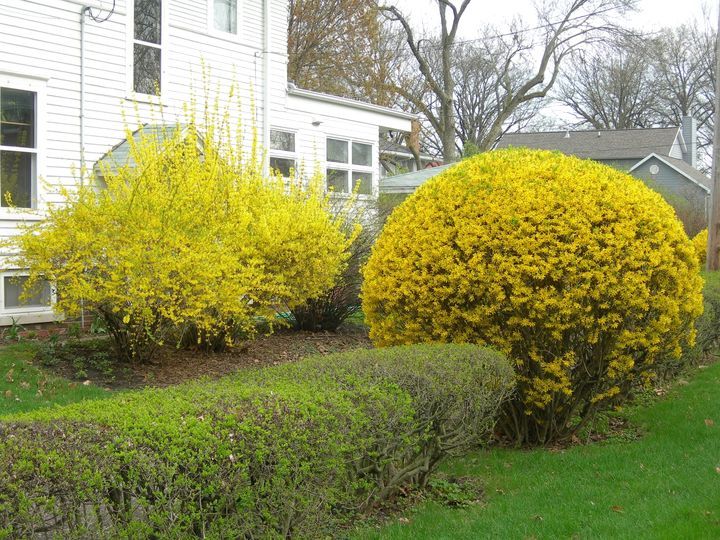 Форзиция. Этот красивый кустарник начинает цвести ранней весной. Декоративно смотрятся не только цветы этого кустарника, но и листья, за что его любят многие садоводы.