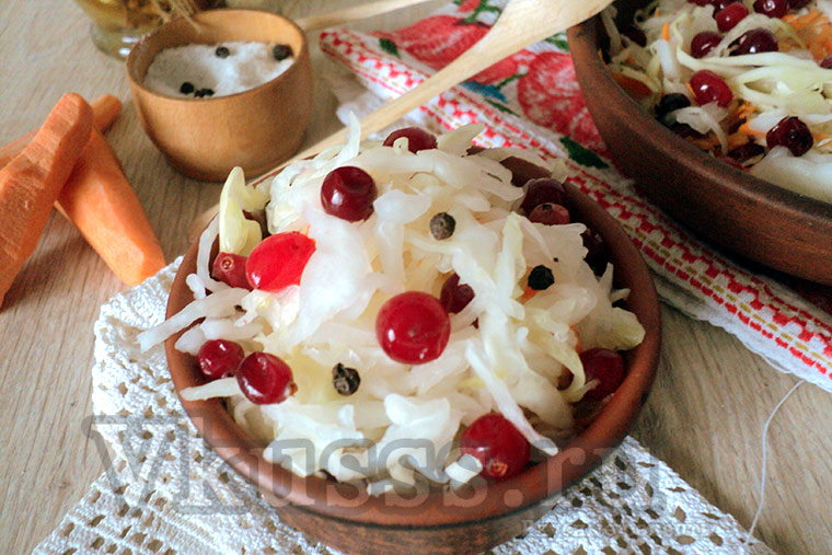 Очень вкусная квашеная капуста с клюквой и брусникой